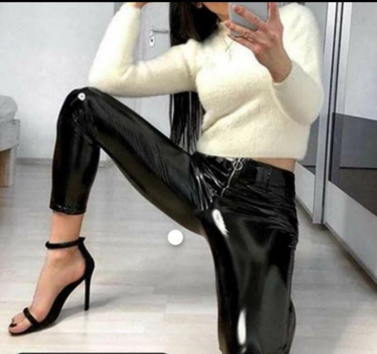 Adaugă un plus de atitudine ținutei tale cu acești pantaloni dama lucioși din latex, perfecti pentru un look modern și îndrăzneț.